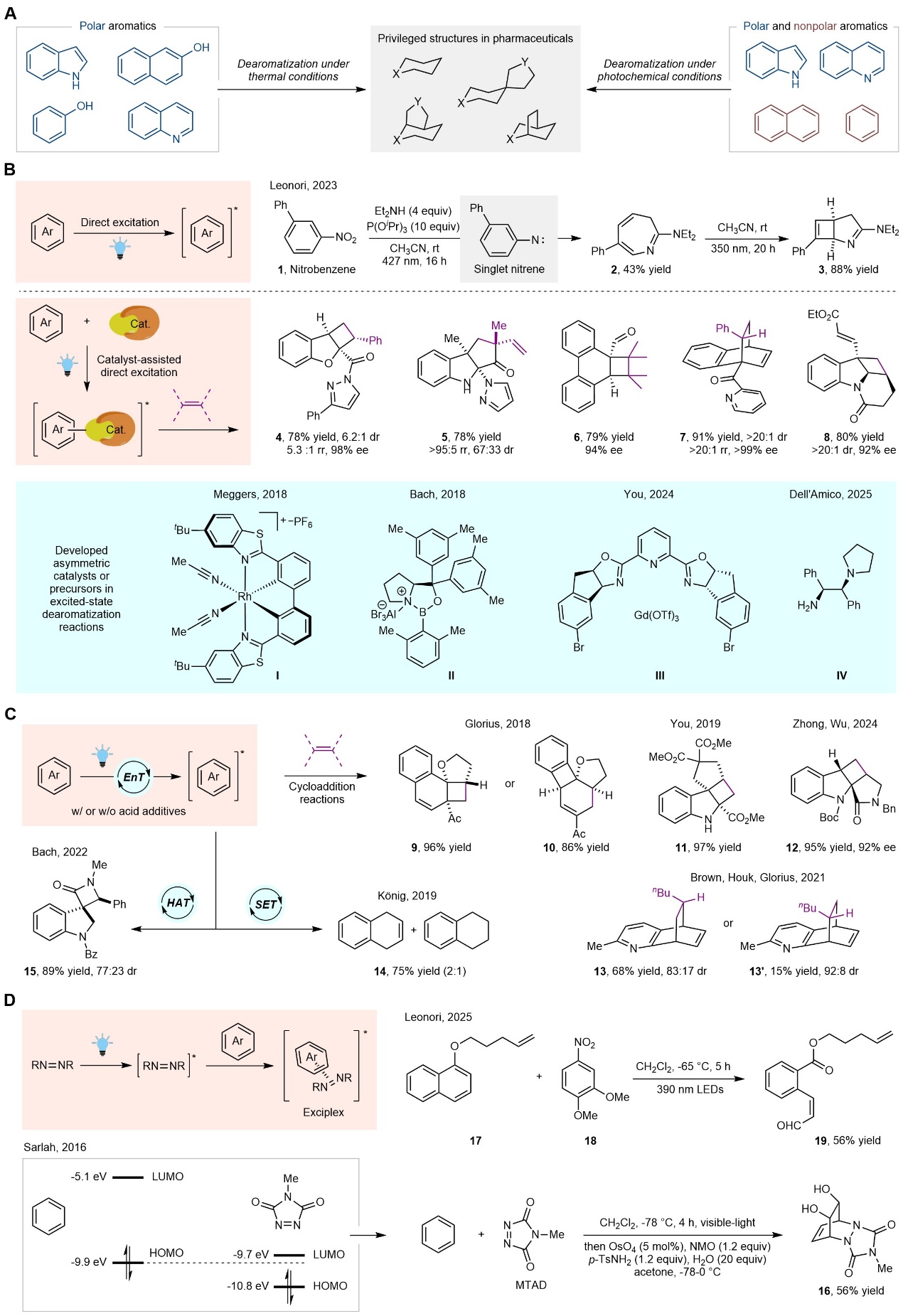 Figure 1.Visible-light-enabled excited-state dearomatization reactions (Image by YOU Shu-Li)